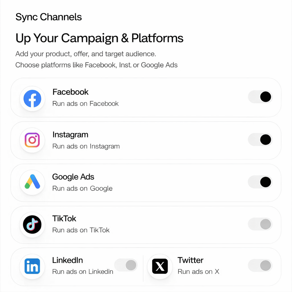 Create ad creatives, copy, and visuals in seconds with AI. Optimize campaigns for better performance, higher ROI, and faster growth.